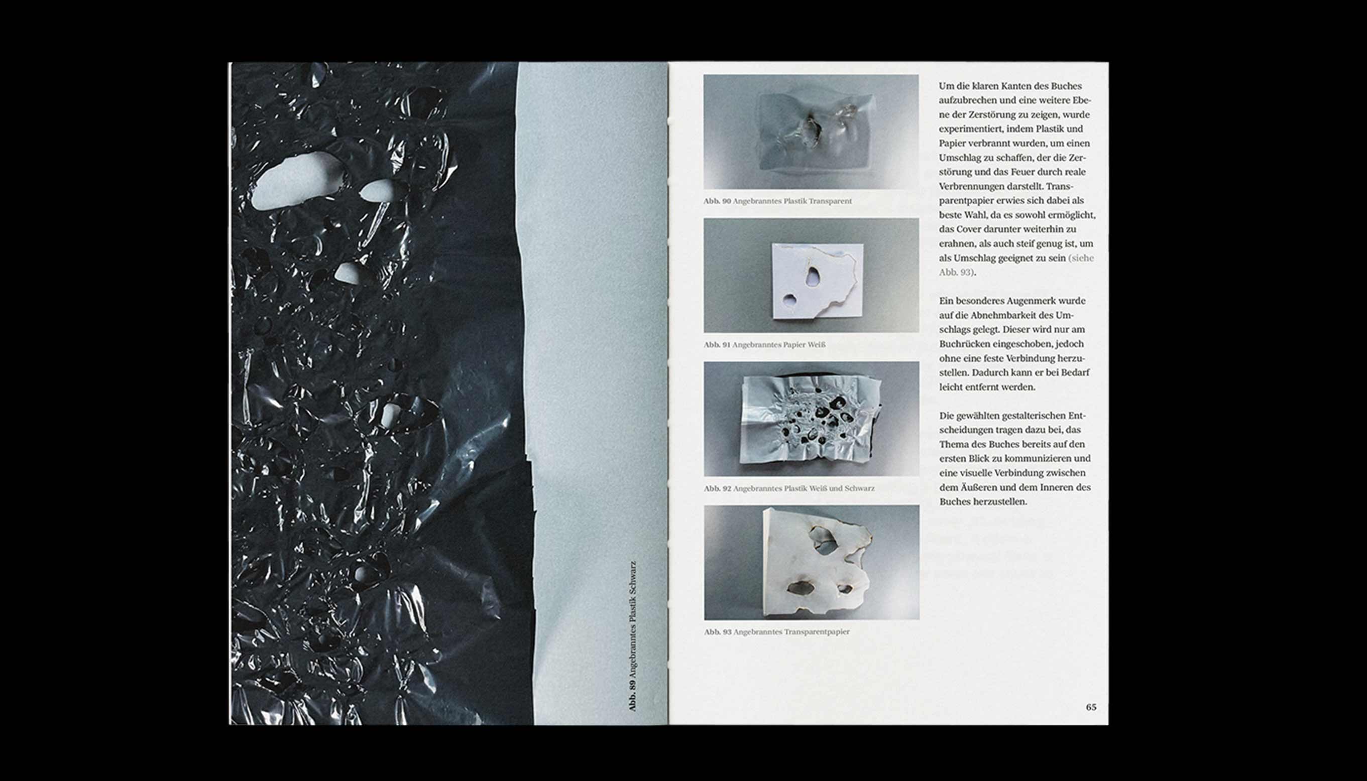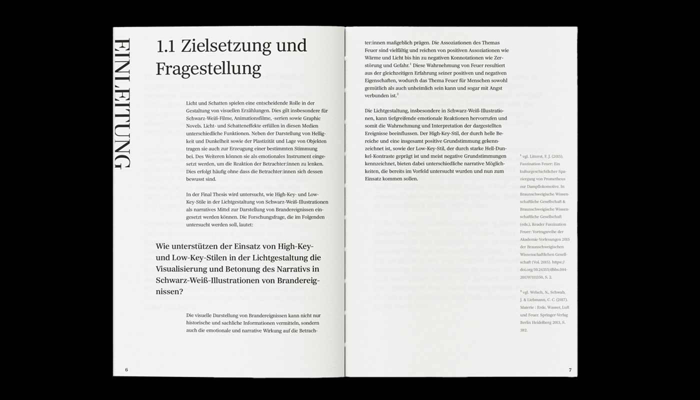 This book serves as a comprehensive documentation of the research and conceptual development that went into the creation of Blazing Shadows. It not only highlights the early phases of idea generation and thematic exploration, but also delves into the technical steps of bookbinding that were applied in the final product.In addition, this documentation presents a series of material experiments involving fire, paper, and plastic to explore whether it is possible to create a book cover with real burn marks—focusing on tactile and olfactory experiences as expressive tools.The book also includes extended research into the role of light and shadow in illustrative works, and how these elements can be used to intensify emotional impact. It examines visual storytelling pioneers who have mastered the use of contrast to enhance narrative depth.Lastly, the documentation walks through the illustration process of each piece featured in Blazing Shadows, culminating in the presentation of the final illustrated book.