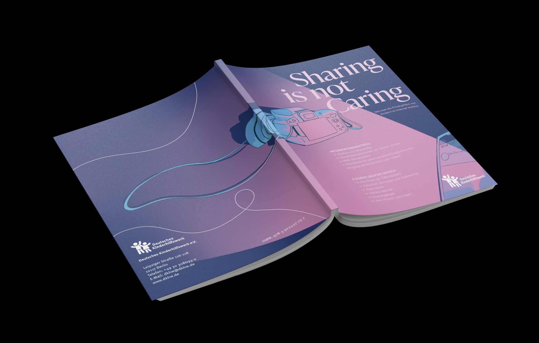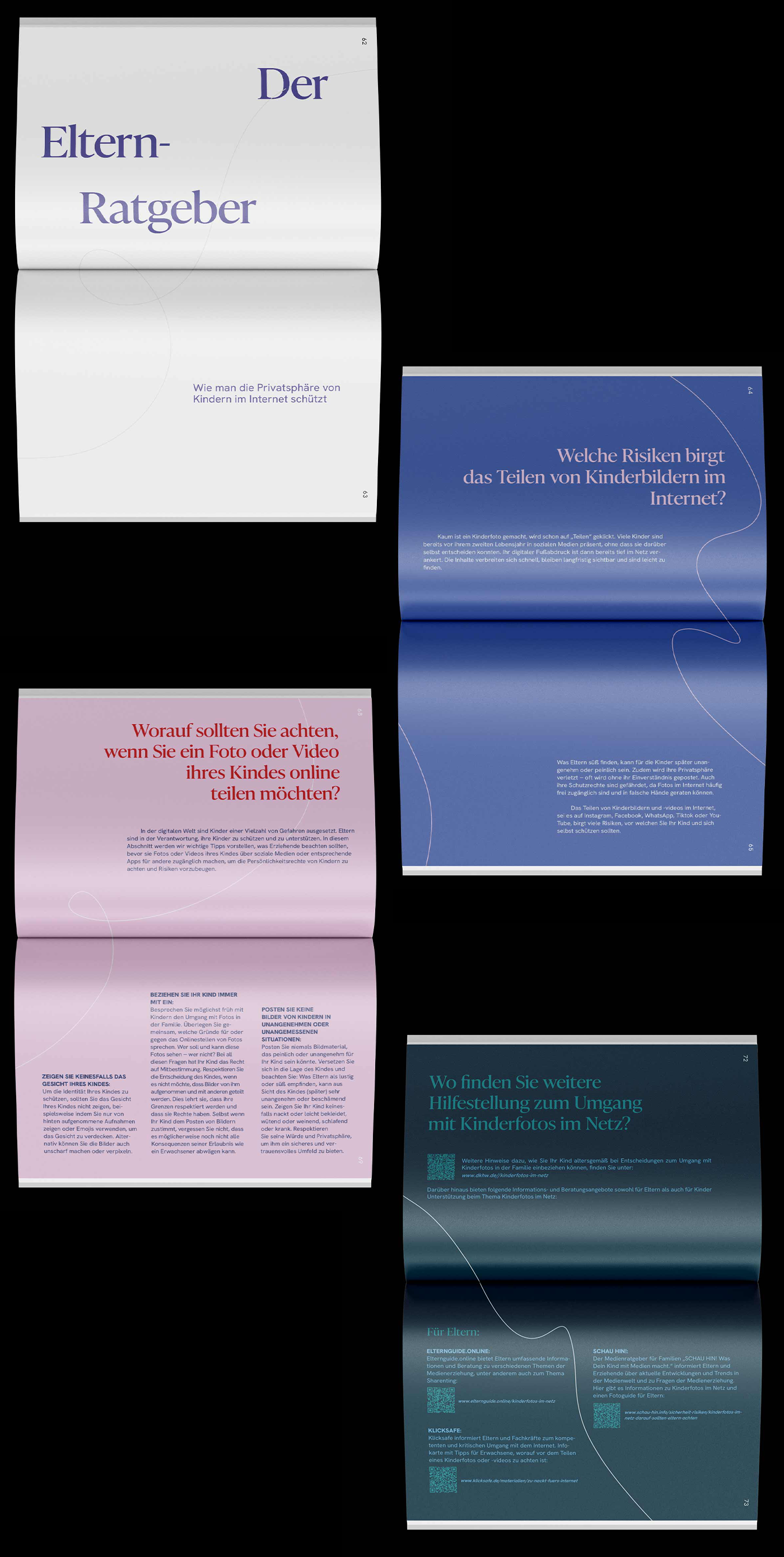 We developed an informative guidebook for parents that includes both educational content and real-life stories presented as graphic novels. The goal was to make the emotional impact of digital exposure tangible while avoiding the use of real children's images.